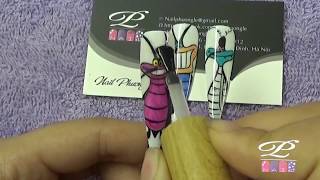 Vẽ móng tay đẹp, Nail đẹp, vẽ móng tay, học vẽ móng tay, học vẽ nail, thực hành vẽ cọ thư pháp bài 6